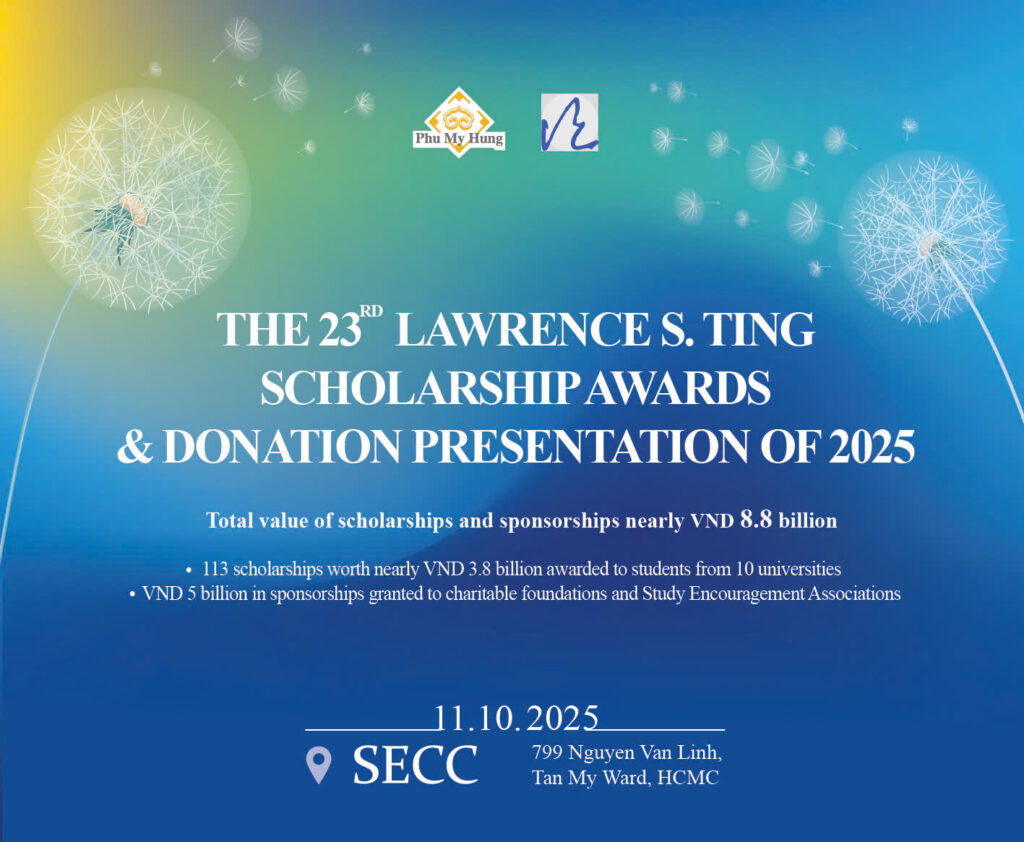 On October 11, 2025, Phu My Hung Corporation and Lawrence S. Ting Foundation will host The 23rd Lawrence S. Ting Scholarship Awards and Donation Presentation for 2025” at the Saigon Exhibition and Convention Center (SECC), Tan My Ward, Ho Chi Minh City.