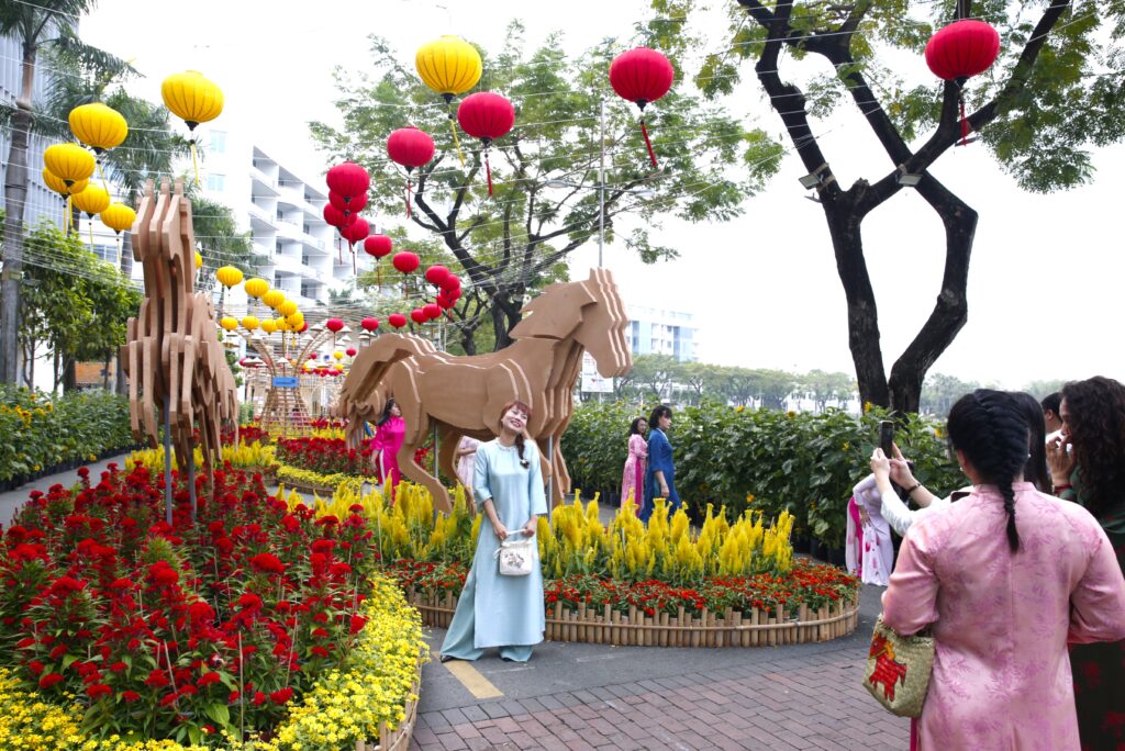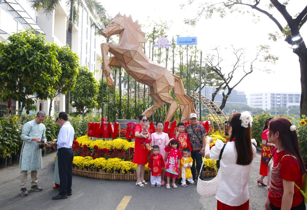 Mở cửa đón khách vào ngày 24 tháng Chạp, không gian trang trí với chủ đề “Xuân Gắn Kết” ngập tràn sắc hoa cùng nhiều tiểu cảnh độc đáo của Đường hoa Phú Mỹ Hưng Tết Bính ngọ đã thu hút đông đảo khách du xuân tham quan, thưởng lãm và ghi lại những khoảnh khắc ngày xuân.