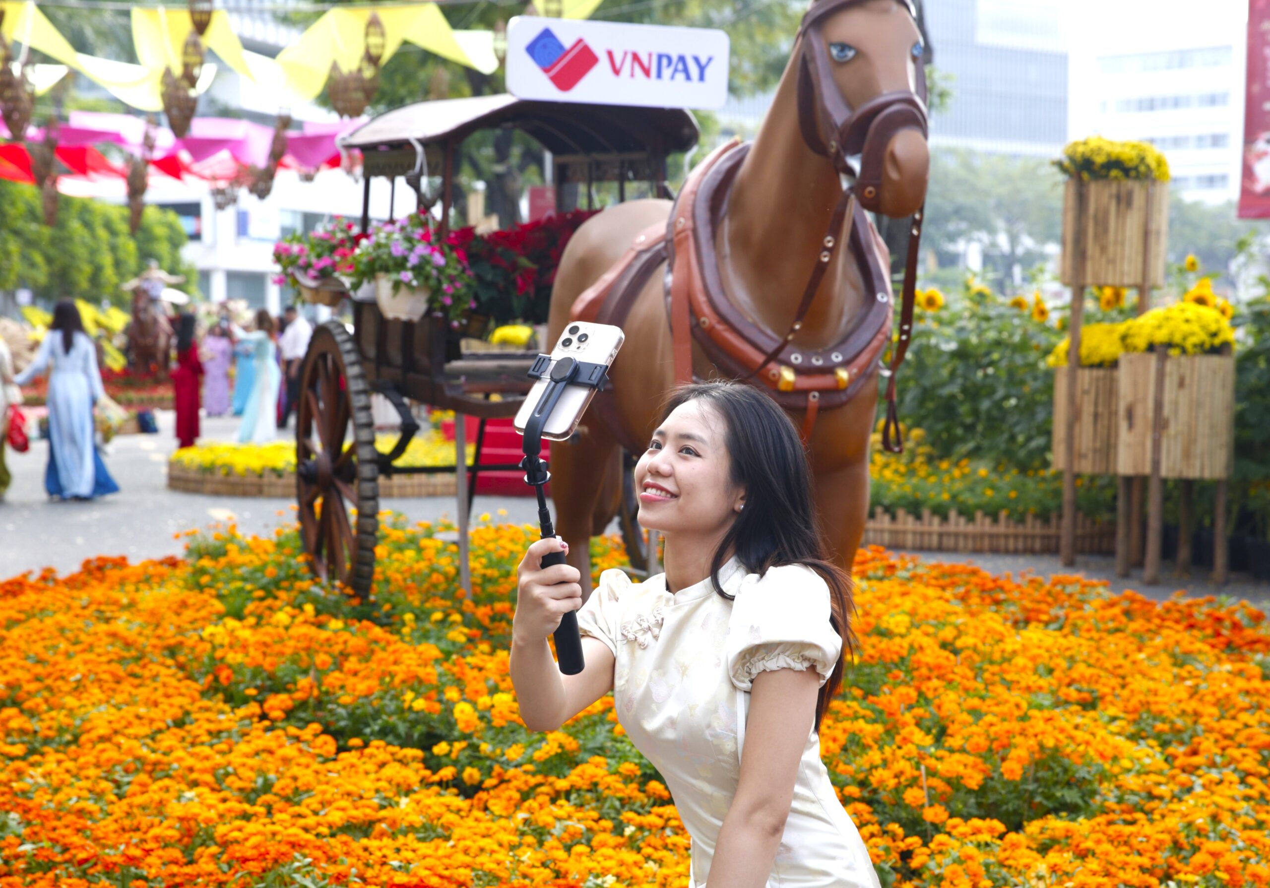 Dạo quanh Đường hoa Phú Mỹ Hưng có thể bắt gặp muôn vàn phong cách tạo dáng đầy cảm hứng. Nếu các bà, các cô dịu dàng, đằm thắm trong những tà áo dài truyền thống bên những chiếc xe thổ mộ hay những khóm hoa mộc mạc, thì giới trẻ lại thể hiện sự phá cách bên linh vật ngựa đa giác hay tuyến Metro hiện đại. Có người thuê thợ chụp ảnh chuyên nghiệp, có gia đình, nhóm bạn tự chụp cho nhau, có người tự mình selfie… Trên tất cả, ai cũng muốn ghi lại cho mình những khoảnh khắc tươi đẹp của ngày xuân.