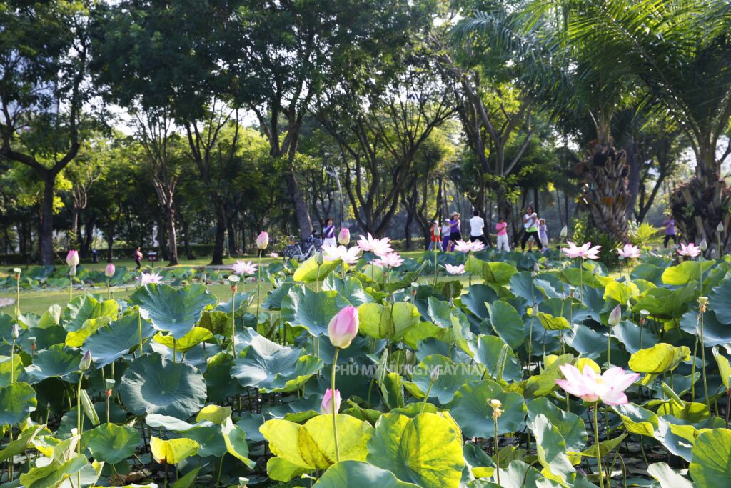 “My house is nearby, and I exercise every morning at Crescent Lake Park, so I’ve known about these lotus ponds for a long time. The lotus blooms every few months, but it is most abundant and beautiful in summer. Walking and breathing in the fresh air, infused with the fragrance of lotus flowers, is truly relaxing”, said Mr. Hoang, a resident of Phu My Hung.