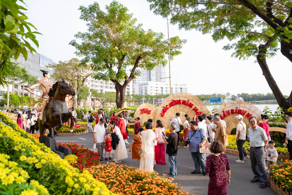 Những ngày Tết Nguyên đán Bính Ngọ 2026, Đường hoa Phú Mỹ Hưng tấp nập chào đón khách du xuân. Với những tiểu cảnh độc đáo, ý nghĩa, rực rỡ, lung linh và sắc hoa tràn ngập, mỗi ngày, ước tính Đường hoa Phú Mỹ Hưng đón hàng chục ngàn lượt khách tham quan, thưởng lãm.