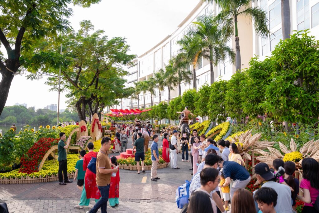 Đường hoa Phú Mỹ Hưng diễn ra từ ngày 11/2 đến 20/2/2026 tại Hồ Bán Nguyệt, thu hút đông đảo người dân và du khách tham quan, trải nghiệm.