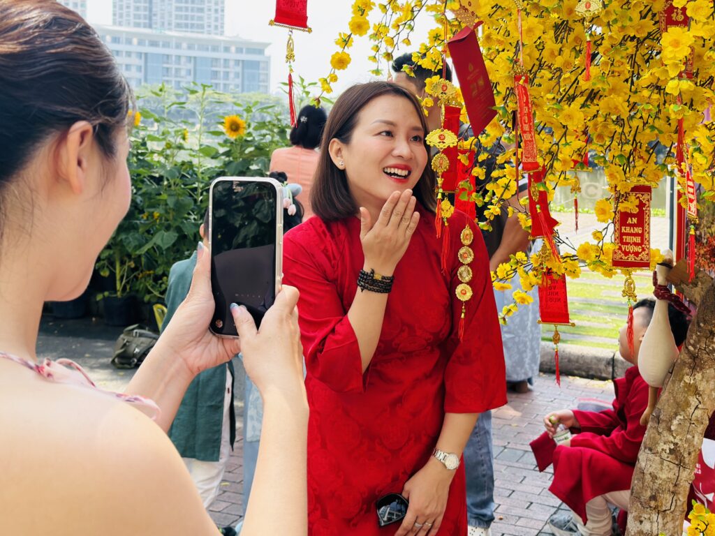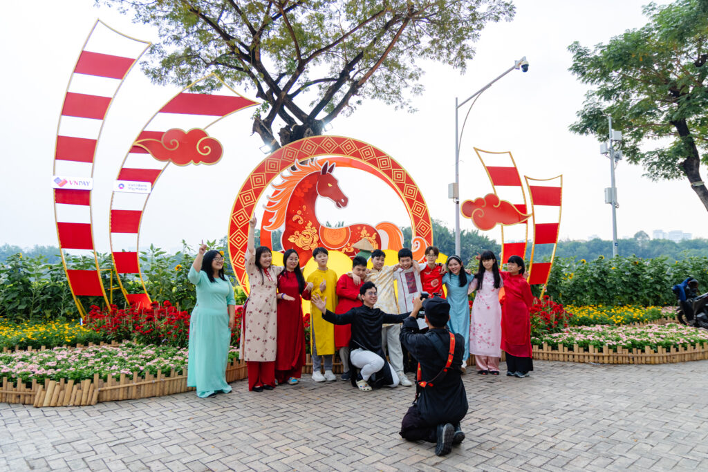 Bên cạnh đó, các khu vực như “Bốn Mùa Hương Sắc” tái hiện vẻ đẹp làng quê Việt, “Phố Ông Đồ” với hình ảnh ông đồ cho chữ đầu năm, hay “Nhịp Điệu Tre Việt” mang đậm dấu ấn truyền thống cũng trở thành điểm chụp ảnh được yêu thích.