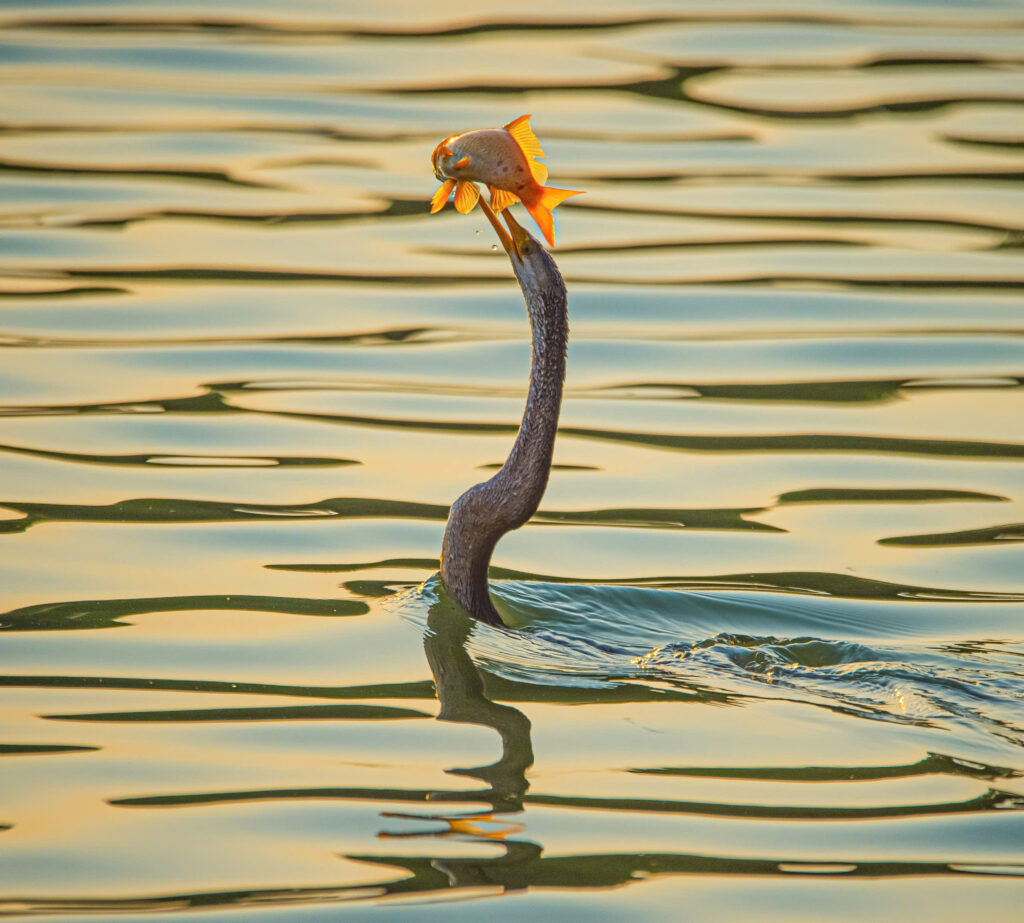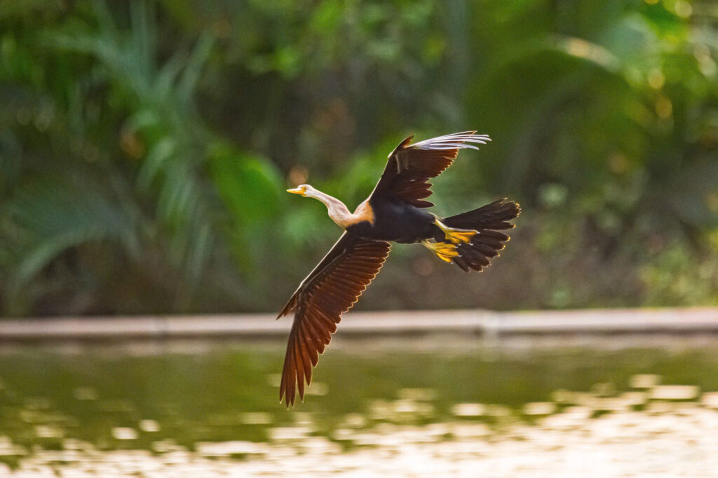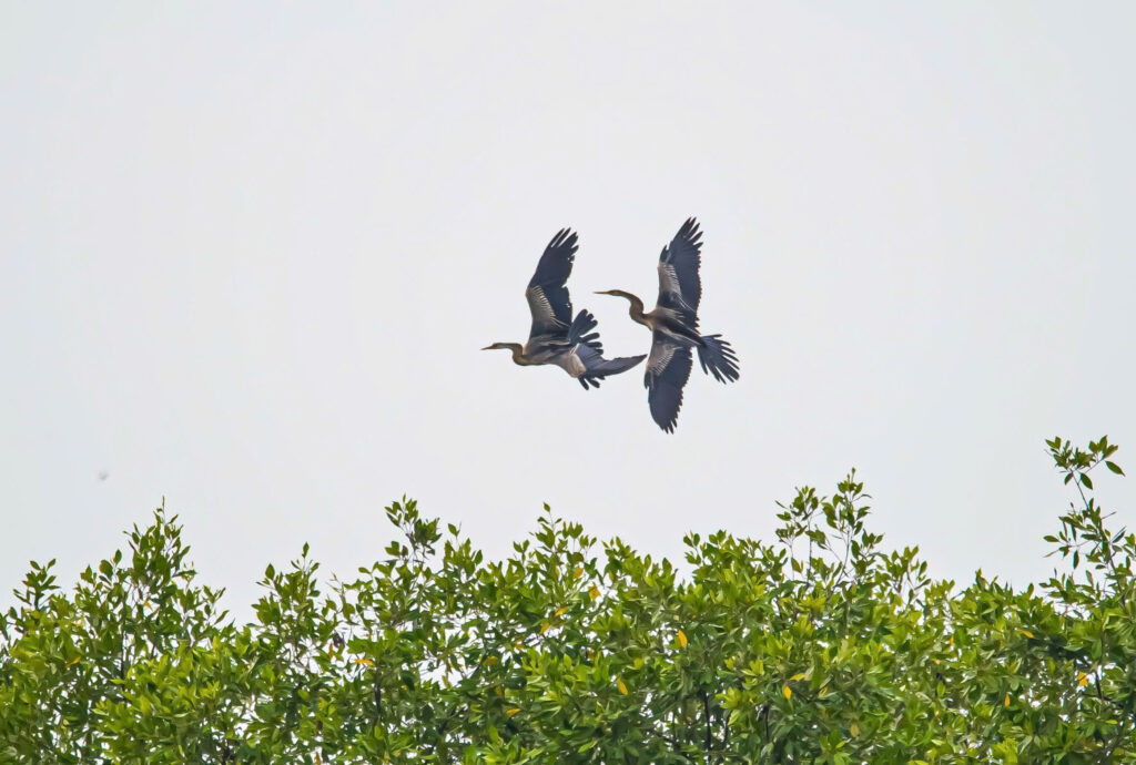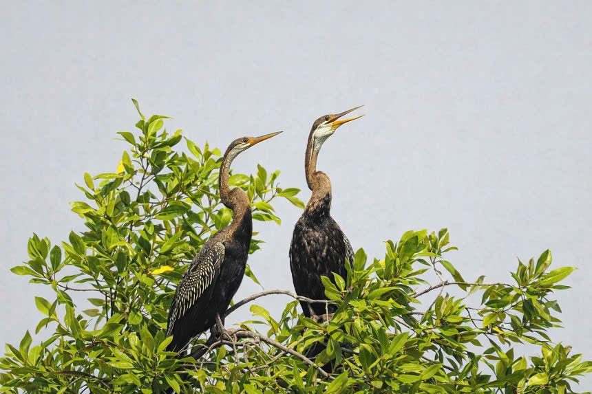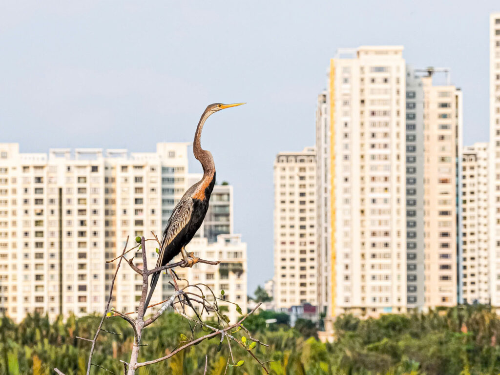 Nhiều năm theo đuổi đam mê chụp ảnh các loài chim di cư, nhiếp ảnh gia Minh Quân vẫn không khỏi bất ngờ khi lần đầu tiên chứng kiến hàng chục con chim cổ rắn, thuộc nhóm 1B trong Sách đỏ Việt Nam, nhóm đe dọa tuyệt chủng, đến kiếm ăn, lưu trú và bay lượn rợp trời ở Hồ Bán Nguyệt (đô thị Phú Mỹ Hưng).