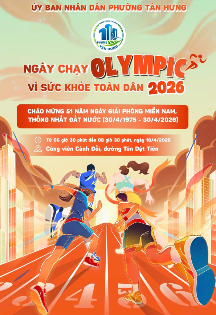 Hướng tới kỷ niệm 51 năm Ngày Giải phóng miền Nam, thống nhất đất nước (30/4/1975 – 30/4/2026) và tiếp tục đẩy mạnh Cuộc vận động “Toàn dân rèn luyện thân thể theo gương Bác Hồ vĩ đại”, Ủy ban nhân dân phường Tân Hưng tổ chức Ngày chạy Olympic vì sức khỏe toàn dân năm 2026.