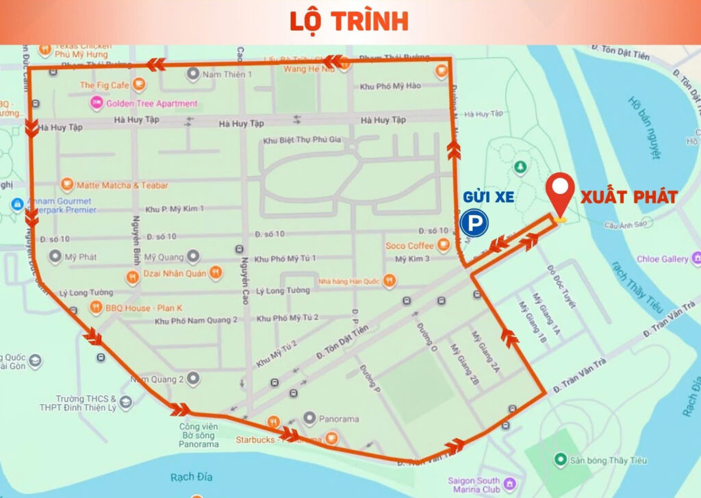 Chương trình sẽ diễn ra từ 6:30 đến 8:30, thứ Bảy ngày 18/4/2026 tại khu Công viên Cảnh Đồi, phường Tân Hưng, đô thị Phú Mỹ Hưng, TP.HCM. Người tham gia sẽ chạy cự ly 5 km qua các tuyến đường trong khu công viên, với trang phục thể thao phù hợp. Sự kiện không yêu cầu đăng ký trước, người dân chỉ cần đến và tham gia trực tiếp.